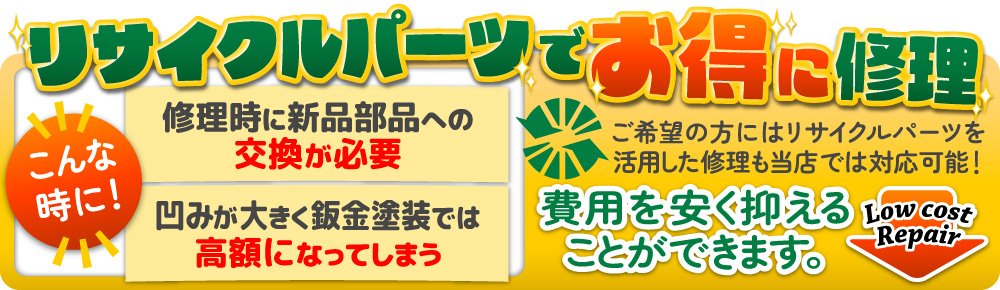 交換修理となる場合でも、より修理費用をお安く済まされたい方には、弊社ではリサイクルパーツを活用した修理もご対応可能です。