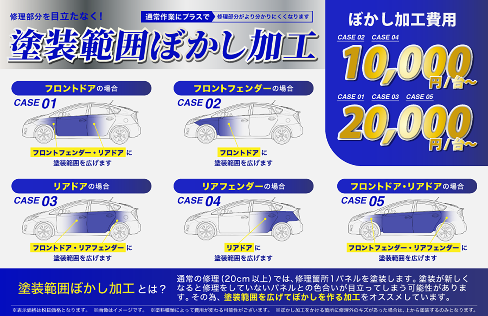 ※(例)ドア2枚とフェンダー修理の場合など。